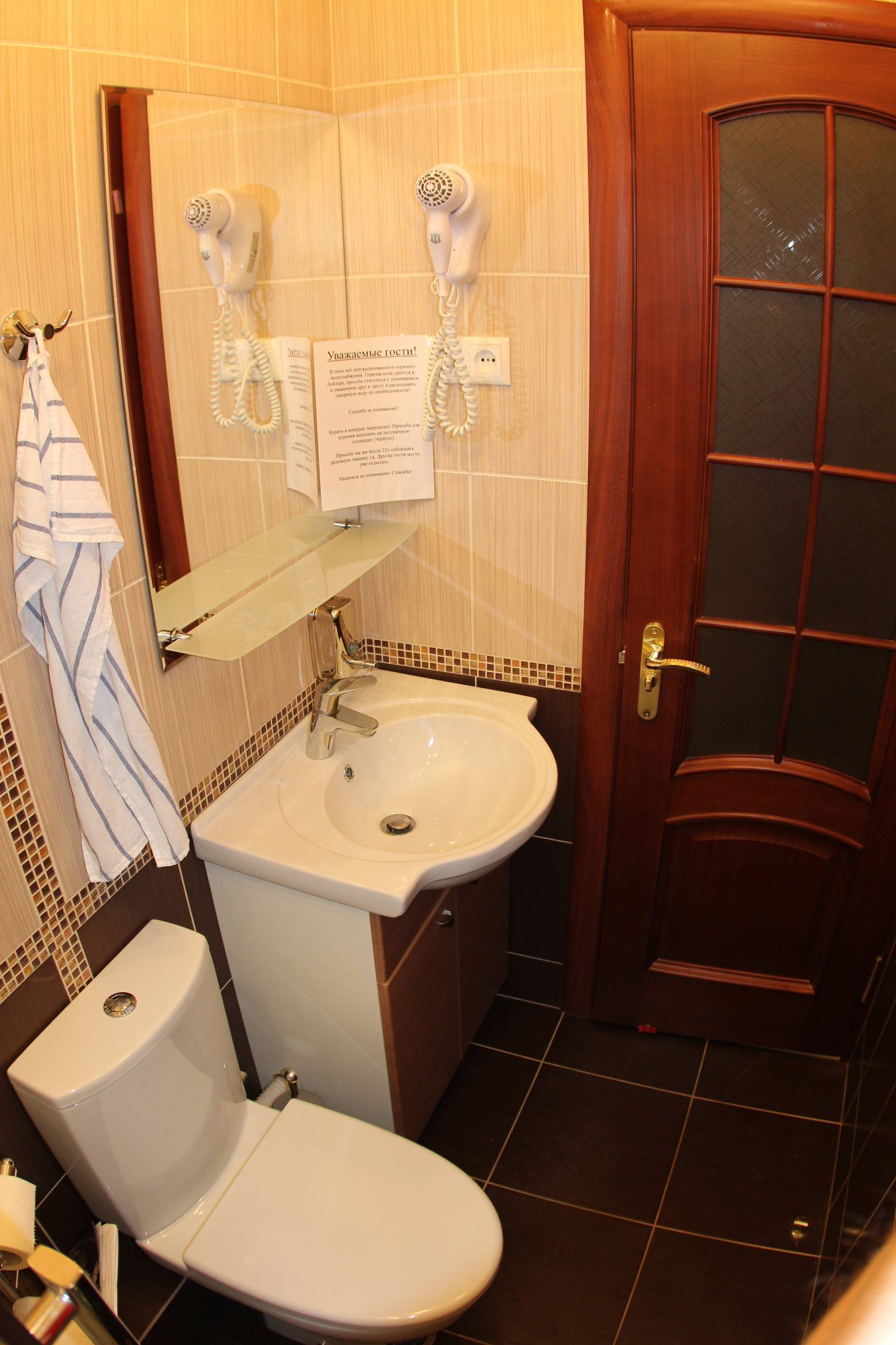 Ванные комнаты общие, на этаже. Две комбинированных ванные комнаты (на три эконом номера: две ванные комнаты), с удобным душем, туалетом и феном в каждой ванной. В каждой ванной комнате есть туалетная бумага, жидкое мыло для мытья рук, гель для тела/для мытья волос.